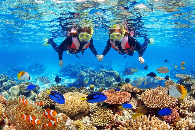 お天気が心配でしたが青の洞窟まで行けてラッキーでした。すごく魚がいっぱいで夢のような時間でした。フルフェイスのダイビングは慣れるのも早くて小学生の息子も楽々潜れていました。また沖縄に行ったら体験したいです。