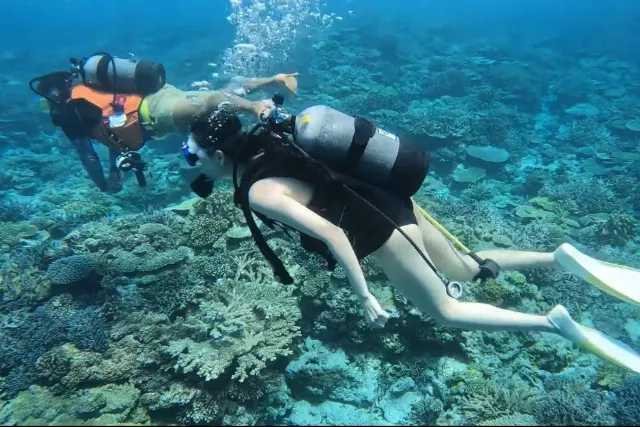 始めたのダイビングでしたが、安心して海の中を楽しむ事が出来ました。美ら海水族館で見た景色の中に実際に入り込んで魚たちをまじかで見る事が出来て感激しました。