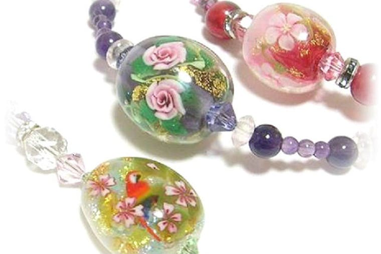 山形県米沢市のとんぼ玉と民芸和紙 大和屋では、約2時間でトンボ玉製作に挑戦できます。バーナーを使った本格的な作業ですが、講師が丁寧に教えますので、初めての方もお気軽にお越しください。小さなガラスの中にできる、まるで小宇宙のような美しい模様が魅力的です。まずはとんぼ玉でガラス工芸の魅力に触れてみませんか。