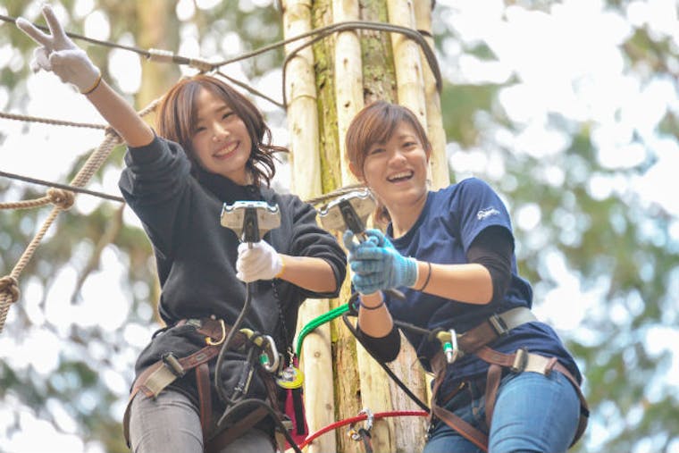 ツリークロスアドベンチャー厚木・七沢は、神奈川県厚木市に2017年オープンした都心からのアクセス良好なアスレチック場です。命綱を頼りに地上5~15mに連なる42の難関をクリアしてゴールを目指します。深さ30mの谷の上を滑空する「谷越えジップライン」や、16m先のネットへ飛び込んでいく大迫力の「ターザンスイング」など、大人でも十分楽しめるアクティビティが盛り沢山!家族や仲間との絆は更に深まること間違いなしです!七沢温泉郷も隣接しているので、体験後はぜひ温泉で癒されていってください。