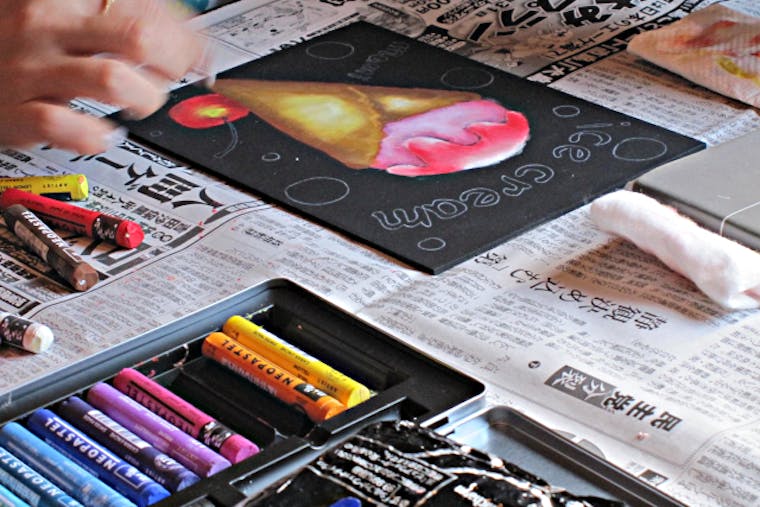 神戸市垂水区にあるgreendaisy ChalkArtでは、オイルパステルを使い黒板に描く「チョークアート」の体験レッスンを開催しています。指を使ってくるくると描いて完成する絵は、立体的で独特の味があり、看板やウェルカムボードなどにぴったり。最大6名までの少人数制でじっくり学ぶ事ができます。