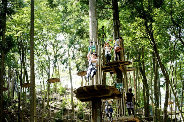 かつて東洋一のキャンプ場だった森をそのまま活かした、関西最大級のアドベンチャーパーク。身長110cmあれば、5歳から体験可能なチャレンジコースから、身長140cm〜体験できるアドベンチャーコース、500mを超える長さのジップラインコースまで、幅広い世代が“挑戦して、達成して、笑顔になれる”施設です。 子どもも大人も、緊張と解放を味わいながら**“家族がひとつになって、一生の思い出を創れます。** 遊んで、学んで、食べて。夏の日帰り旅行や週末のお出かけにぴったりの1日が完成します!