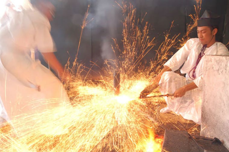 刀匠「吉田 劔 直江兼久」が岐阜県富加町に構える工房「加治田刀剣」。少人数や団体様向けに、刀匠2~4名による日本刀鍛錬の実演や大槌体験を行っています。日本刀の作法伝授や鑑賞・解説もあり、伝統の奥深い魅力について知ることが出来ます。ここにしかない本物の日本刀体験を心ゆくまでご堪能ください。
