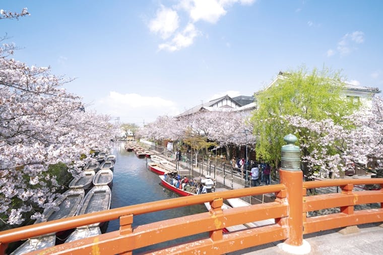 船頭が歌う白秋の舟唄とともに、文人たちが愛した風景を楽しむ約1時間の船旅