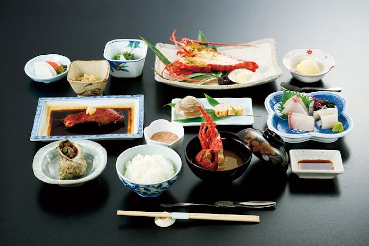 「丸だい 仙水」は江の島にある海の幸を楽しめるレストランです。江の島産の伊勢海老を使った塩ゆでや味噌汁、しらすなど海の幸をたっぷり堪能できます。江ノ島電鉄とのコラボで乗車券付きでGoToトラベル適用となります。