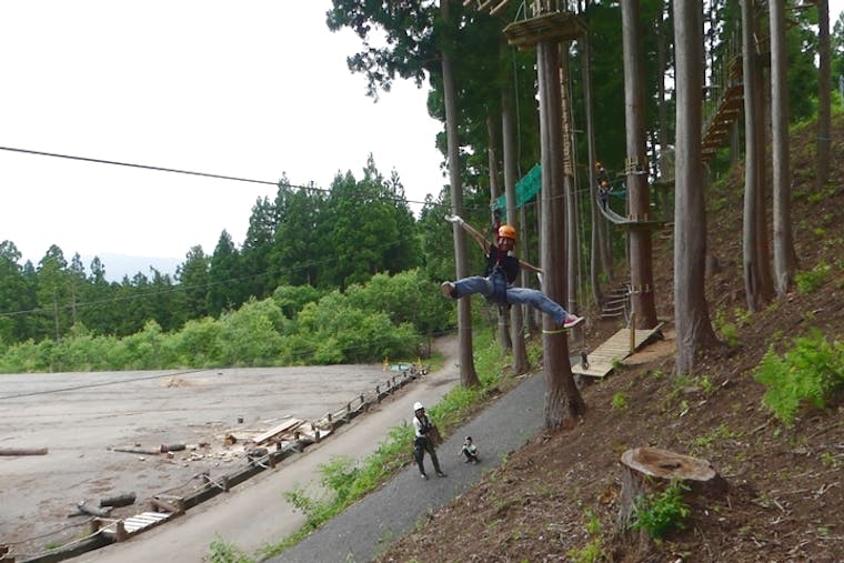 フランス発の森林アドベンチャーに挑戦!地上20mからの絶叫ダイブも楽しめます