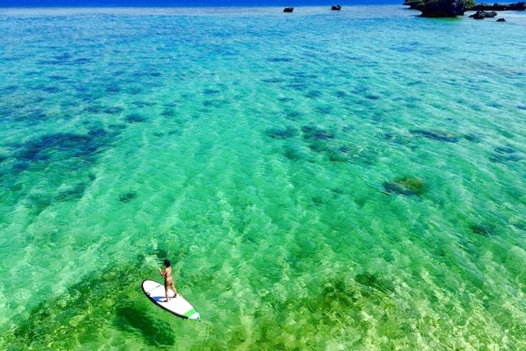 真栄田岬まで車で約6分の場所でゲストハウスを営む「Life is a Journey(ライフイズアジャーニー)」。SUP(スタンドアップパドルボード)のツアーも開催しており、その日のベストポイントへお客様をご案内しています。店舗は海の前にあるので、ツアー前後のくつろぎの場所としてもご利用いただけますよ!