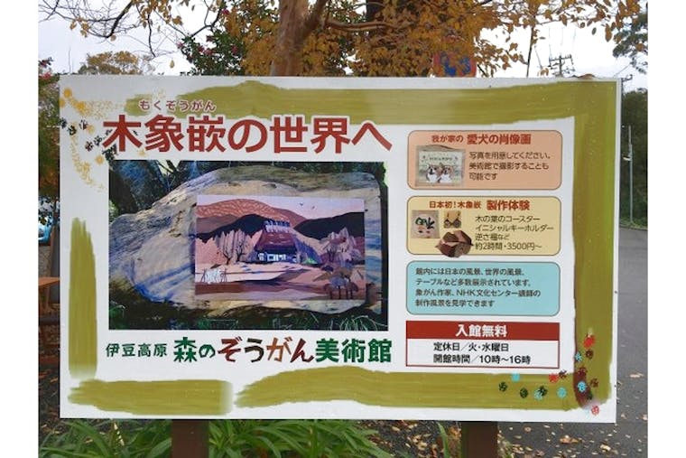 「森のぞうがん美術館」では、心なごむ日本の風景、マーケタリー発祥のヨーロッパの風景、かわいい動物たちが登場する作品やテーブルなど多数の作品を展示しています。富士山を望める美しい海や絶景の夕陽、四季の花々もお楽しみいただけますよ。また、家族で楽しめる 「製作体験コーナー」もご用意!ぜひ、お立ち寄りください。