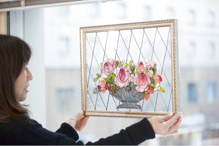 「日本ステンドフラワー協会」では、特許取得のオリジナルテクニックを使ったステンドフラワー®を制作できます。ステンドグラスのように透明感があり繊細な作品が作れますよ。新しい趣味を見つけたい方や、新しい資格に興味がある方はぜひ体験しに来てください。阪急電車伊丹線「伊丹駅」西口より徒歩すぐとアクセスも良好です♪