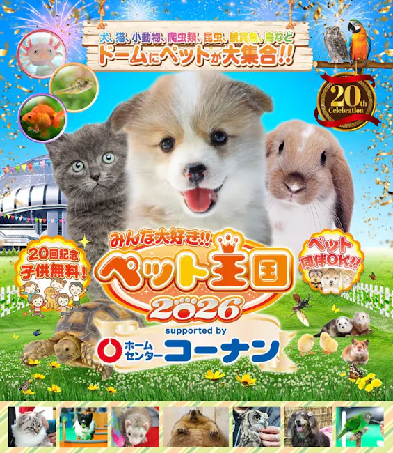 ぺット王国は、ペットとの生活の素晴らしさやペットと暮らすことの効用を実感・体感していただけるペットイベントです。 2005年に大阪ドーム(現在の京セラドーム大阪)で初めて開催以降、毎回多くの来場者を動員しています。ペットと一緒にドームに入場できるのも大人気。 犬、猫、小動物、爬虫類、昆虫、観賞魚、鳥などが大集合する展示コーナー。かわいい動物とのふれあいコーナー。ペット商品の紹介&サンプリングコーナー、オトクなペットグッズアウトレットコーナーなど、ペットに関するアトラクション、情報がいっぱいです。 今年も『楽しい』そして『オトク』なイベントが企画されています。ゴールデンウィーク(GW)は、ペット王国にご来場下さい。 ※犬・猫の生体販売はありません。