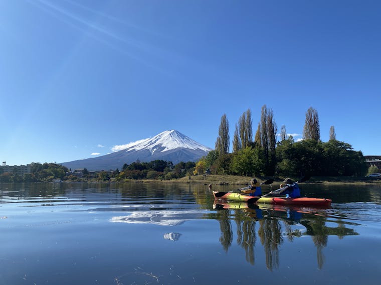 「NaturaBase(ナチュラベース)」では山梨県河口湖畔で各種アクティビティをご提供。カヤック体験やレンタサイクルで雄大な自然と触れ合うひとときをお過ごしいただけます。カヤックにはワンちゃんも同乗OK!ガイドつきツアーなのでお子さまも安心です。「河口湖IC」より車で約7分。グループやファミリーで是非ご参加ください。
