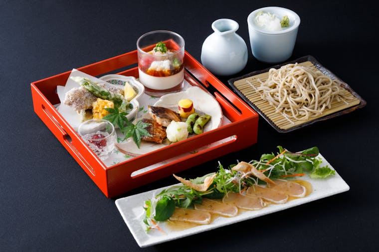 「麺処NAKAJIMA」はホテルニューオータニ大阪に併設されている日本料理店です。一日数量限定の手打ちそばや、鹿児島県枕崎の最高級鰹節を使用した自慢の出汁。特別に開発した縮麺のうどんには京都より取り寄せた水で作る出汁でいただきます。”美味しいホテル”として手間を惜しまず素材を活かした新感覚の麺をお楽しみください。