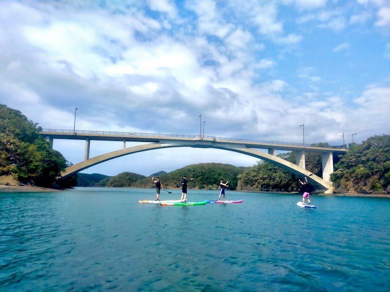 対馬の浅茅湾という複雑な入り江と多くの無人島が織りなす大自然の絶景 青い空の下、深い山々に囲まれて、広い海の上をSUPに乗って海上散歩 足元には魚が泳ぎ、遥か昔から変わらない景色を楽しめます。 大自然の中で、みんなではしゃぐのもよし、自分を見つめ直すにもよし!!是非、対馬に来たらSUP体験がオススメです!
