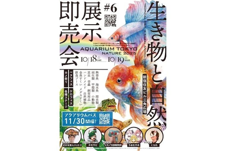 アクアリウム東京は、は、”都会で感じる自然”をテーマにした国内最大級のネイチャーマーケットです。生き物ブースでは、熱帯魚、爬虫類や小動物の生き物などの展示販売。動物ふれ合いコーナーでは、小さなお子様も実際に珍しい生き物と触れ合う事ができます。植物ブースでは、熱帯植物、観葉植物や水生植物などの販売。また、ハンドメイドブースでは自然をテーマにした「ハンドメイド作品」など個人による展示販売も人気です。お子様から大人まで気軽に参加できるワークショップやコンテスト、店舗やネットショプでは味わえない、「見て触って」体験できるのも魅力です。