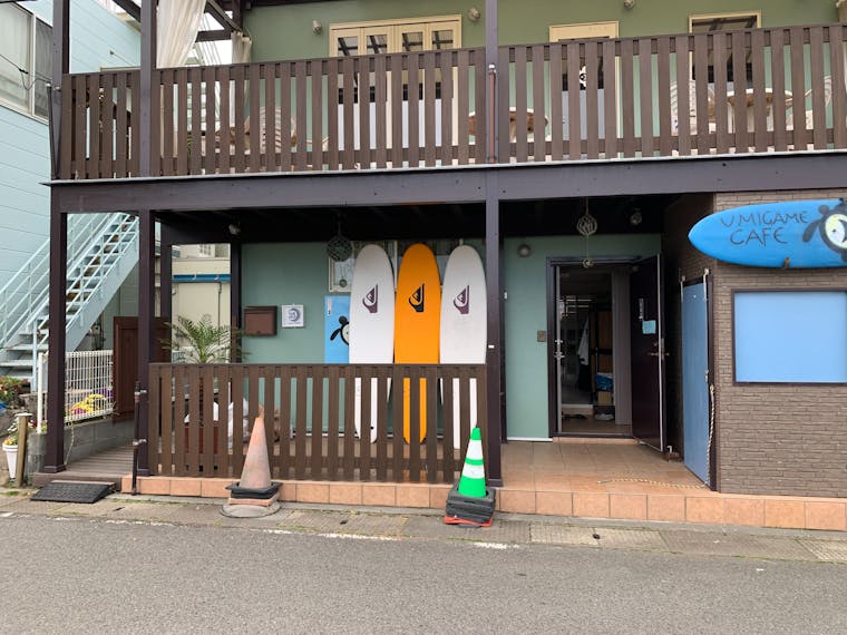小田急「片瀬江ノ島駅」から徒歩3分、海まで1分という好立地にあるteam35は、ベテランインストラクターがサーフィン指導しています。サーフィンの後は、2階にあるカフェで海の幸とビールをどうぞ!レンタル釣り竿のご予約も承ります。