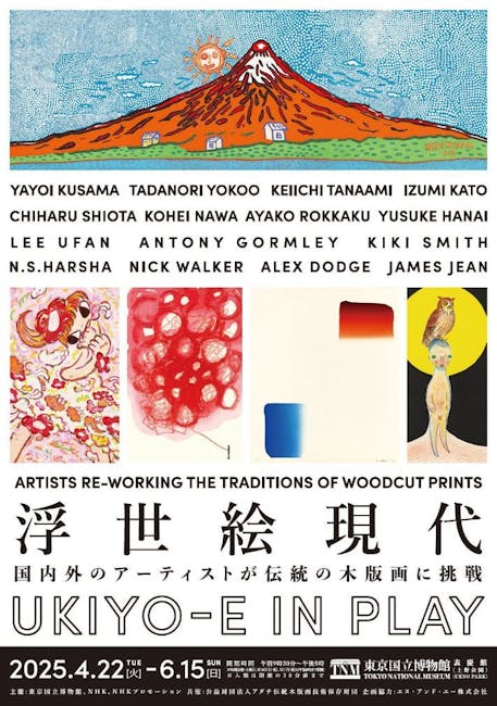 日本の木版画の技術は、江戸時代の文化の中で独自に発展し、浮世絵という力強く華やかな芸術を生み出しました。「浮世」という言葉には「当世風の」という意味があり、浮世絵版両はまさにその時代と社会を色鮮やかに映し出すメディアでした。 写楽や歌麿、北斎の浮世絵を生み出したこの高度な木版画の技術は、途切れることなく、現代まで職人たちに受け継がれています。山桜の版木を使い、和紙に墨と水性の絵具で摺り上げることで生まれるシャープな線や軽やかな色彩は、唯一無二のものです。伝統の技術は、同時代の人々の心をとらえる作品を生み出し続けることで、さらに次代へと継承されていきます。 この展覧会は、伝統木版画の表現に魅了された様々なジャンルのアーティスト、デザイナー、クリエーターたちが、現代の絵師となり、アダチ版画研究所の彫師・摺師たちと協働して制作した「現代」の「浮世絵」をご覧いただくものです。 総勢約80名のアーティストたちの木版画を通じて、現代から未来につづく伝統の可能性をご鑑賞ください。