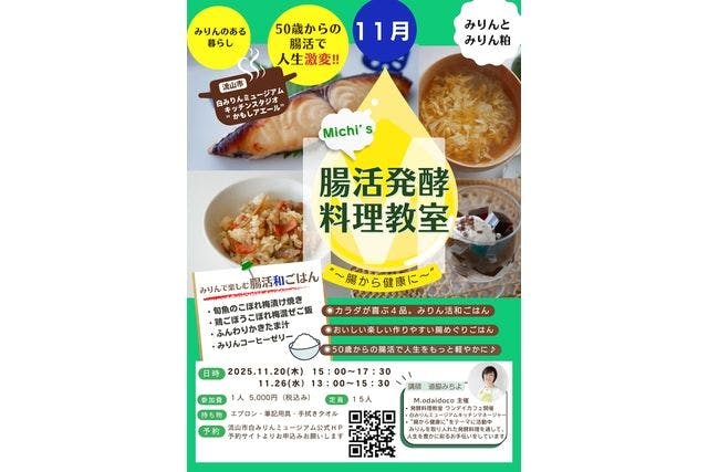 5 / 5素晴らしい!フレンチトーストを作る回に参加しました。作る前に丁寧かつわかり易くみりんの成分や使い方を教えて頂き、みりんシロップの美味しさに感激しました。砂糖を使わずコクと甘みがあって美味しいフレン...ひょっこり投稿日 0