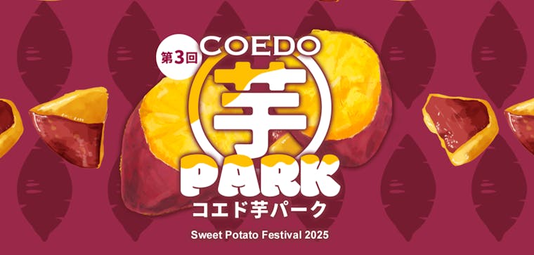 昨年2月に3万人のご来場をいただいた「コエド芋パーク」を今年も開催いたします! 川越の貴重な食文化である「川越いも」の伝統・文化を広めたい! 冬の川越をホクホクに熱く盛り上げたいという想いからはじまったコエド芋パーク。 今回も美味しい川越芋をお楽しみいただける他、全国からさつまいもを使ったグルメが大集合します! 皆さまのご来場お待ちしております。