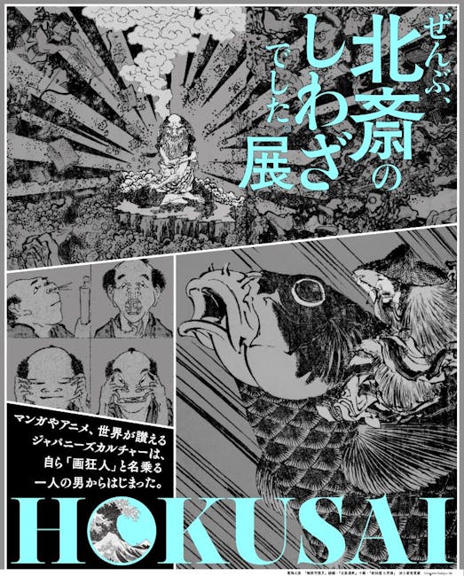 世界で最も有名な日本人アーティスト、「HOKUSAI」。 アイコンとして知られるあの“大波”の絵は、ダ・ヴィンチの《モナ・リザ》と並び称される名画であり、知らない人はいないでしょう。北斎は90年の生涯で30,000点もの作品を残し、93回の引越し、30以上の画号を使い分けた自由奔放な生き様でも知られています。紙と筆しかなかった時代にあって、彼の表現は、いまや世界を席巻する日本のエンターテインメント文化̶「マンガ」や「アニメ」のルーツともいわれています。 本展は、『北斎漫画』1,700冊を所蔵する浦上満氏(浦上蒼穹堂)の全⾯協⼒のもと開催されます。質・量ともに世界一として知られる浦上コレクションの『北斎漫画』全15編をはじめ、多彩な読本(よみほん)の挿絵、『冨嶽三十六景 神奈川沖浪裏』(通称︓⼤波)、自らを“画狂人”と称した晩年の傑作『富嶽百景』全3編・102図、さらには初公開となる幻の肉筆画16図など、出展作品は総数400点を超えます。 「集中線」「ギャグ描写」「アニメ原画」など、現代のマンガやアニメの表現の原点ともいえる作品に着目した新しい展示演出で、200年前の“北斎のしわざ”を体感するそんな貴重な機会となるでしょう。