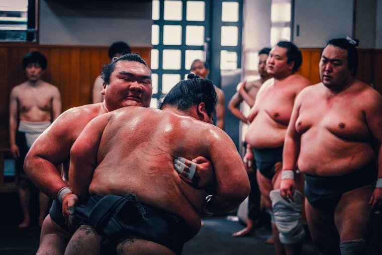 東京の実際の相撲部屋を訪問し、相撲の隠れた世界へ踏み込んでみましょう。 ここは単なるトレーニング施設ではありません——力士たちが生活し、食事をし、スポーツに人生を捧げる場所です。朝の練習の激しさを間近で体験し、それぞれの動きに宿る深い伝統を感じてください。 通常は一般公開されておらず、スポンサーのみがアクセス可能な場所です。そのため、このツアーは地元の人々にとっても稀有な体験です。英語ガイドが相撲のルール、儀式、意味を解説します。また、練習時間外に力士本人と会話する機会もあり、彼らが努力を重ねる大会の意義を深く理解できます。 部屋は東京の伝統的な相撲地区である両国にあり、国立競技場や伝統的なちゃんこ鍋のレストランが数多く点在しています。 ツアー後には、ぜひ試していただきたい相撲の定番料理、ちゃんこ鍋を気軽に楽しむことができます。 古代の神道信仰に根ざした相撲は、単なるスポーツを超えた精神的な文化伝統です。レスリングに似ており、相手を土俵の外に押し出したり、体のいずれかの部分を地面につけさせたりすることで勝利を決めます。トレーニングは早朝から始まり、完全な献身を求められます。トップランクのプロを目指す若き力士たちが、夢に向かって全力で取り組む姿を見学できます。