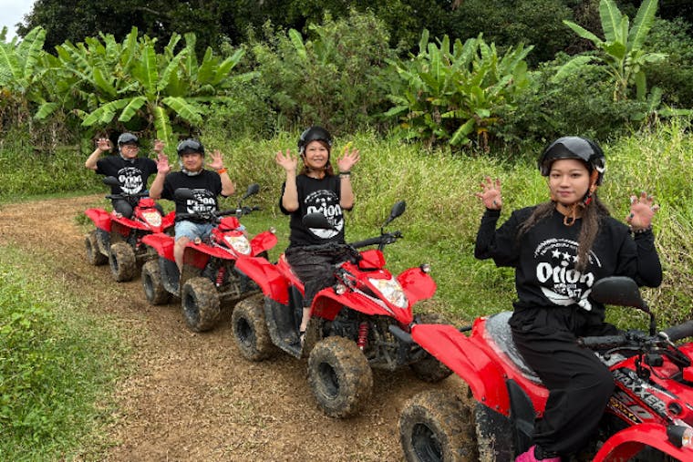 免許が不要なので、お子様からご年配の方まで安心して楽しめるが魅力です。 広大なフルーツ農園コースやジャングルコースをスタッフの先導で安全に走行できます。 ファミリーでの思い出づくりや仲間との冒険に最適な体験を、ぜひご堪能ください♪
