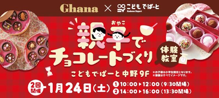| 店舗名 | 親子で手作りチョコレート料理教室@こどもでぱーと中野 1/24(土) |