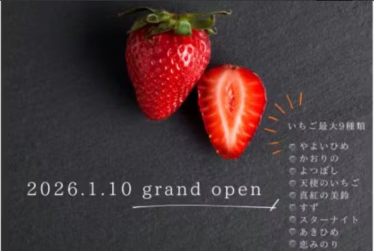 \\2026年1月 GROUND OPEN// 1月にnew open いたしますstrawberry labです♪ strawberry labではみなさまがいちごで笑顔になっていただけるようスタッフで最高のいちご作り環境作りに励んでおります。strawberry labが作る糖度が高く大粒で食べごたえのあるいちごを是非!堪能してください♪ \\最大9品種が食べ放題// 群馬県産の糖度が高いやよいひめをはじめ、新品種をいち早くいちご狩りのお客様にお届け♪希少価値ある☆白いちご☆黒いちごも新登場です!!
