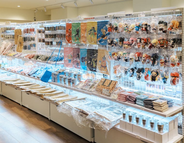 ONE PIECE、 夏目友人帳、鬼滅の刃、進撃の巨人、北斗の拳、シティーハンターなどの人気作品のグッズを販売しています。 漫画出版社が運営しているため、購入できる高精細版画や、ハイクオリティな複製原画などアート商品もたくさん! 等身大のケンシロウ が店内でお待ちしております。