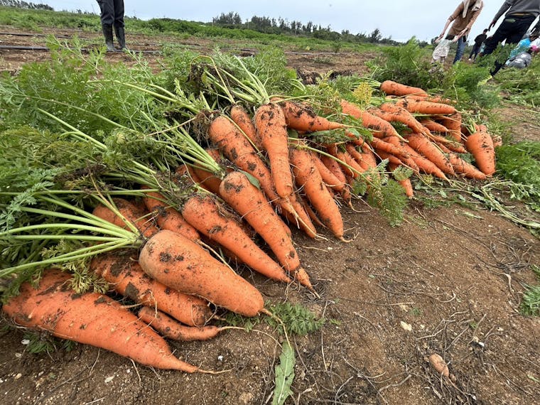 島の大部分がニンジン畑であることから、「キャロットアイランド」の愛称で親しまれています。 津堅島ファームでは、島ならではの自然豊かな環境の中、 実際に畑に入って行うニンジンの収穫体験をご提供しています。 土に触れながら、農業の魅力を体感していただけるプランです。 また、安心・安全な野菜をお届けするため、 農薬の使用は必要最小限に抑え、栽培管理を行っております。 自然と共生しながら、品質の高いニンジンづくりに取り組んでいます。