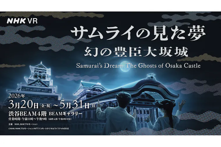戦国時代へ旅に出る— これはバーチャルリアリティーを駆使した新しいエンターテインメント。 VRゴーグルをつけると目の前に現れるのは、400年前に消えた幻の城、豊臣大坂城。 天下人・豊臣秀吉が贅の限りを尽くして築き、“三国無双”と称された名城を、 歩き浮遊し巡る“夢”の体験があなたを包む。 煌めく黄金の装飾、動き出す伝説の鎧兜、サムライが畏れた“珍獣”、天下人が愛した絶景。 そして、戦国最大の戦い、大坂の陣の最前線へ…。 大河ドラマや歴史番組で培われたNHKのクリエイティブを結集して送る、夢の旅へようこそ。