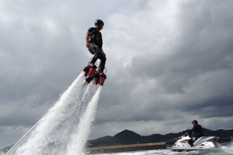 全日本フライボード協会の会員である、川棚大崎マリーンスポーツチームA。長崎県の、大崎海水浴場内で活動中。ジェット噴射で空を飛ぶ、フライボードにチャレンジしましょう!どなたでも空を飛ぶ爽快感を楽しめます。
