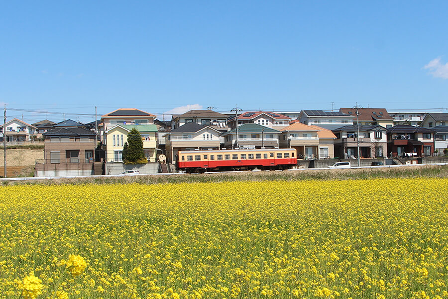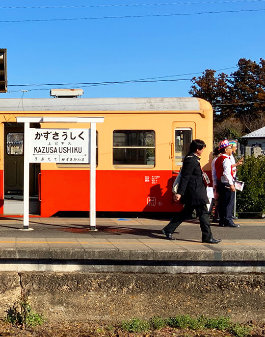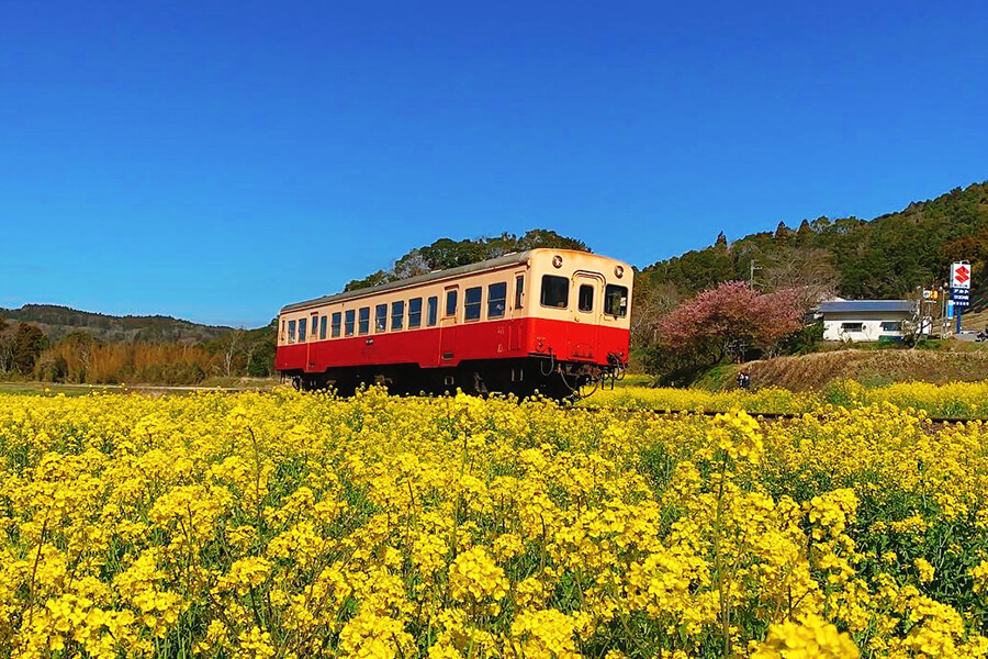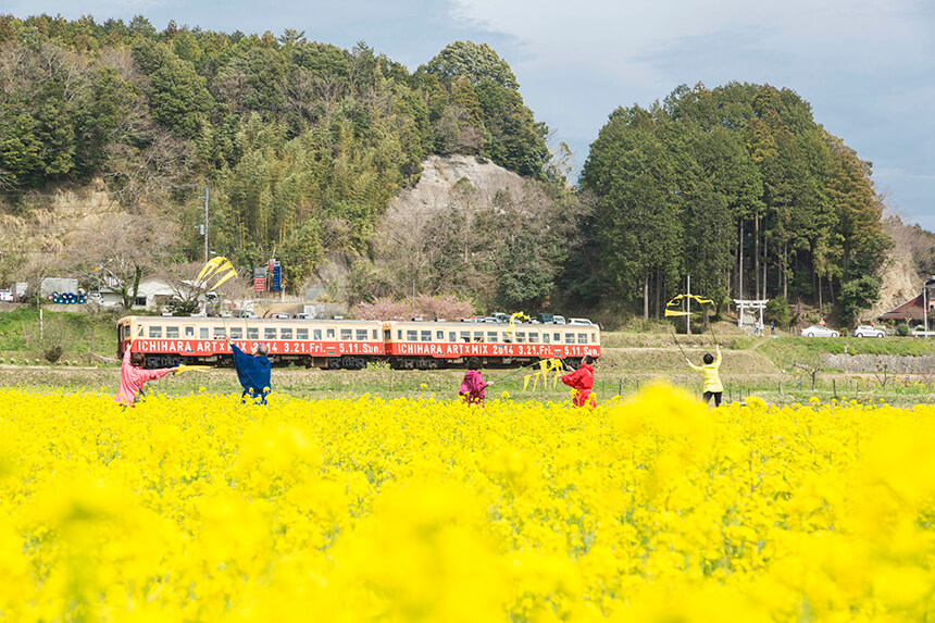 市原市を走るローカル列車、小湊鉄道に乗って芸術祭を巡れば旅気分でアートを楽しめるのも魅力のひとつ。小湊鉄道は開業当時の姿を残し、木造駅舎や車窓から見える里山や田園風景が私たちにタイムスリップしたかのような気分を味わわせてくれます。