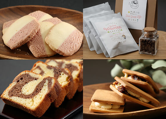 伝統菓子や地元の素材にこだわり、お店が心を込めてつくる名産品。芸術祭とのコラボ商品は特に要チェック!
