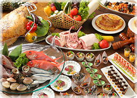九十九里海岸を臨みながら、旬の味覚を使ったお食事をどうぞ。