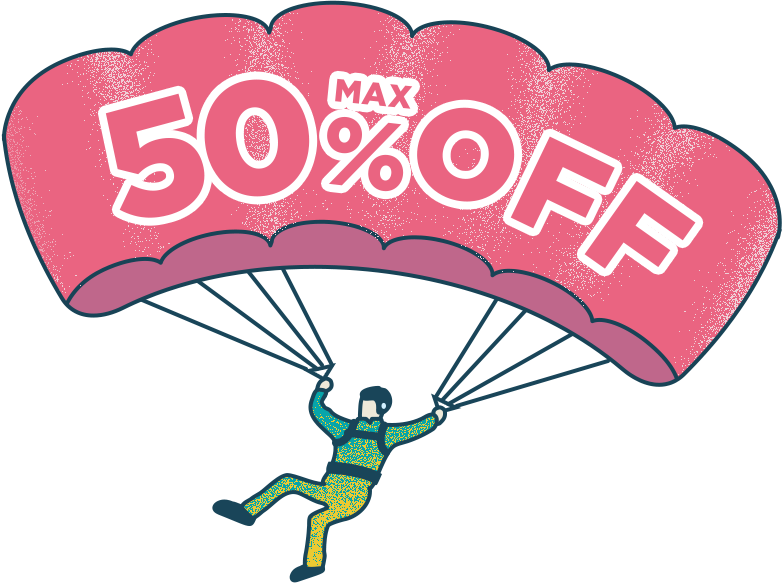 ⼀⼈あたり 平⽇:50%OFF/⼟⽇祝: