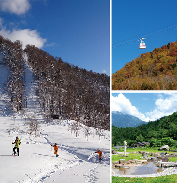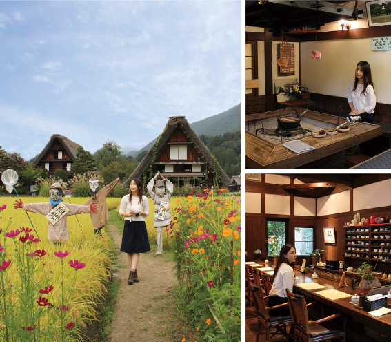 飛騨の山々の合間には、世界文化遺産の「白川郷合掌造り集落」や、四季折々の大自然を楽しめる奥飛騨温泉郷、歴史ある町並みが残る飛騨高山・飛騨古川など、古き良き日本の原風景を見ることができる。