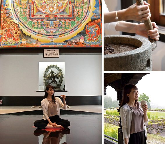 美しい山々と二本の清流の間に位置する南砺市利賀村は、岐阜県と境を接する富山県西南端部にある緑豊かな村。この村に「癒し」をテーマに建てられた「瞑想の郷」。この標高約600メートルの天空の特等席に用意されているのが「ヒーリングカフェ」。非日常の空間で心癒されながら、特別に仕立てられたカフェを愉しもう。