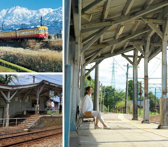 電鉄富山駅と立山黒部アルペンルートの発着地を繋ぐローカル線。そこにはレトロな駅舎が佇み、ノスタルジックな風景が連続する。特定の駅に設置されたスタンプラリーを巡りつつ、都会とは全く違う風景、駅の趣のある世界観に浸り、ぶらり途中下車の旅を満喫しよう。
