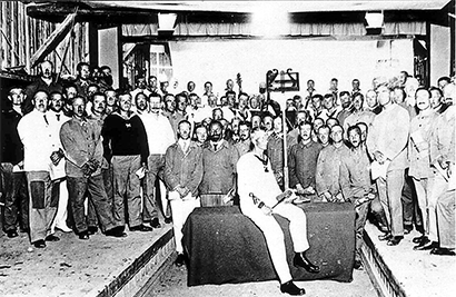 第一次世界大戦中当時、鳴門市板東俘虜収容所では捕虜となったドイツ兵約1,000人が暮らしていましたが、彼らは収容所での生活を少しでも張りのあるものにしようと、様々な活動をしました。音楽会や演劇、学習会、講演会などの文化活動はもちろん、自分たちでグラウンドを作ってサッカーやホッケーを楽しんだり、むずかしい集団体操に取り組むなど、スポーツ活動も盛んに行われました。