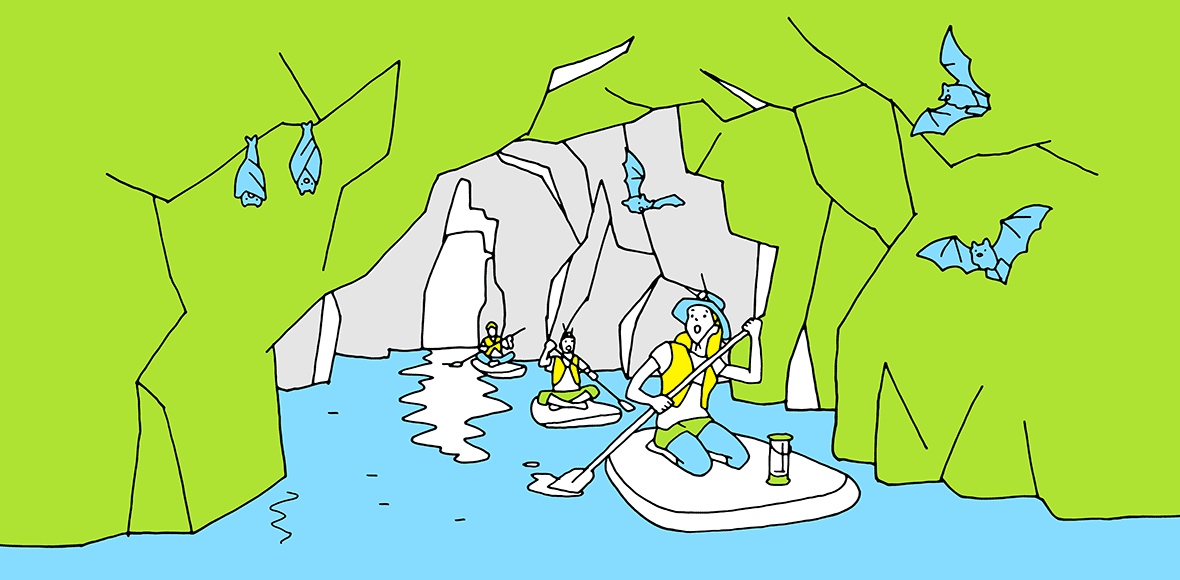 SUPに乗ってコウモリがいる洞窟をクルージング!まるで異世界のような空間を進むアクティビティで、大自然の力でできた雄大な美しさを堪能できます。