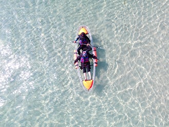 ペダルを漕ぐだけで、海上をスイスイ走れます!ドローンによる撮影付きで、思い出に残る体験に。