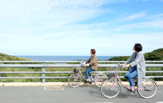 観光地として人気の角島を自転車で駆け抜けよう!電動自転車も、お子様用自転車も豊富なラインナップが、210円から!