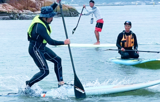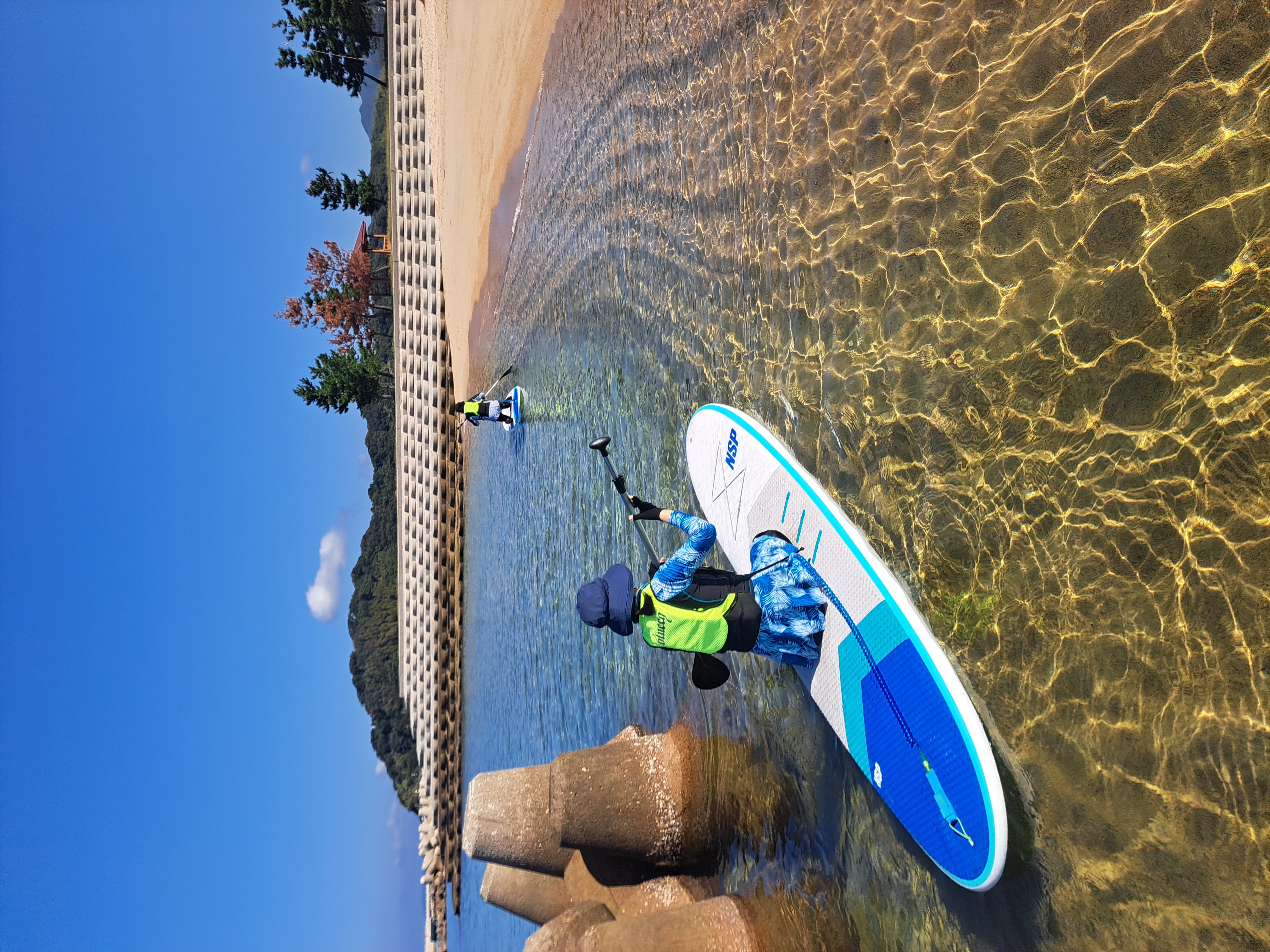 初心者向け90分間のSUP体験プラン。基本動作の習得はもちろん、沖の方までクルージングして、自然を満喫しましょう。