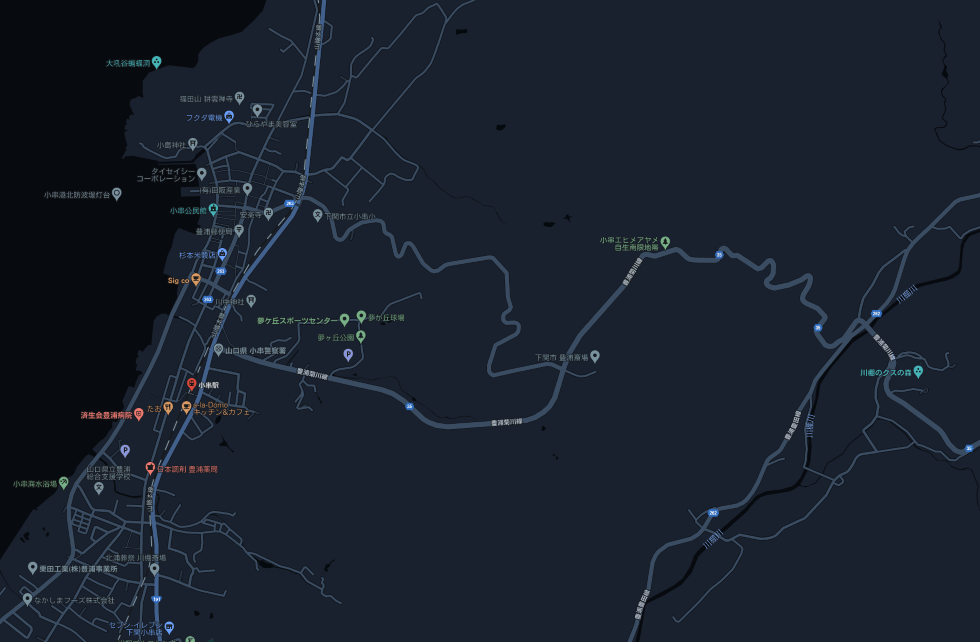 豊浦町小串方面へと抜ける「県道35号線」をそのまま直進して山道へ。