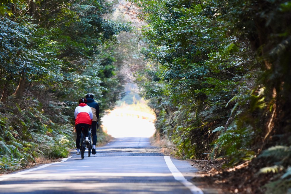 田園地帯をまっすぐに伸びる一本道や、くねくね曲がった峠道、海沿いの平坦路など、気持ちいいコースが続きます。