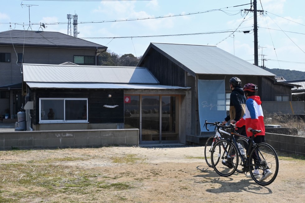 「川中神社」前の踏切を渡れば、休憩ポイントの海辺のカフェ「シグコー」です。