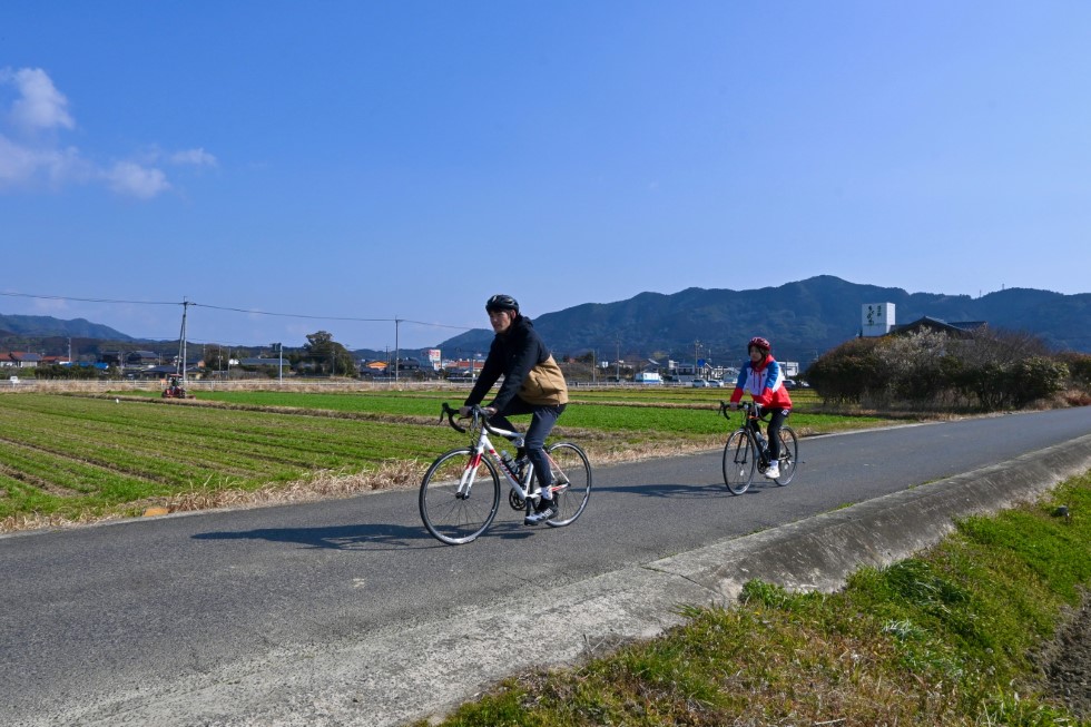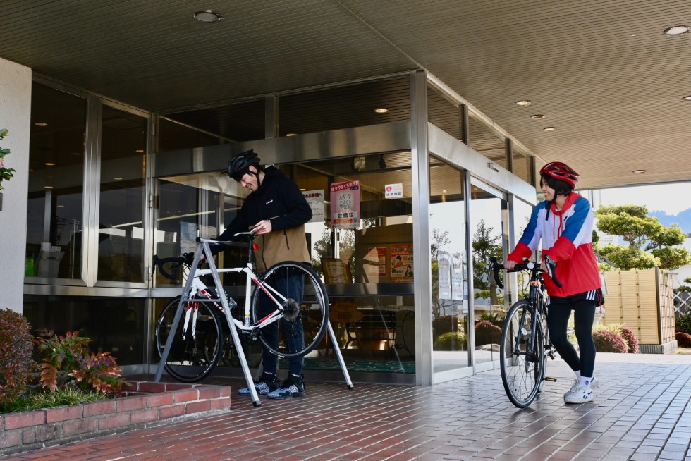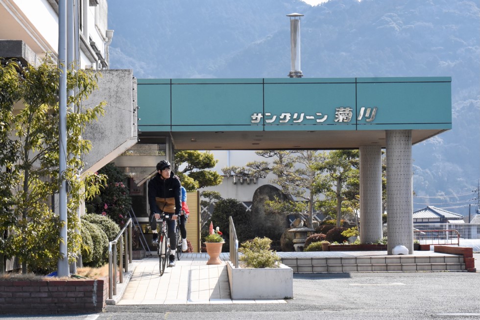 「駐車場はご自由にご利用ください。ここを出発地点に、自然豊かな菊川、豊浦のサイクリングを楽しんでいただければ。帰りはぜひ温泉で汗を流していってください」と、サングリーン菊川の支配人・中村雅之さん。