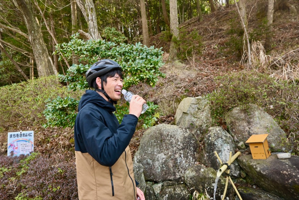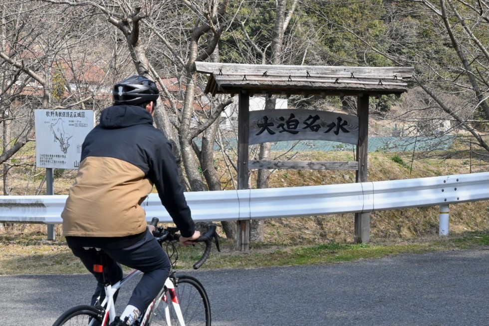 脇道に入り、出発前に中村支配人から教えてもらった「貴飯(きば)」地区にある「大迫(おおさこ)名水」に立ち寄ります。