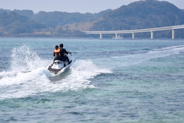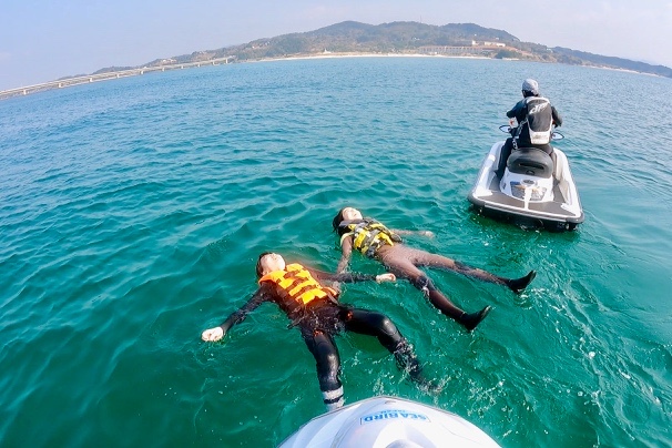 漂流ポイントへは、水上オートバイで向かいます。その準備をしていると、