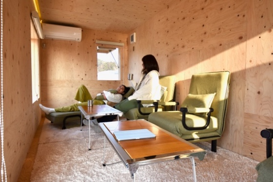 「住箱」は建築家の隈研吾×スノーピークによるモバイルハウス。最近購入したばかりで中はピカピカ!